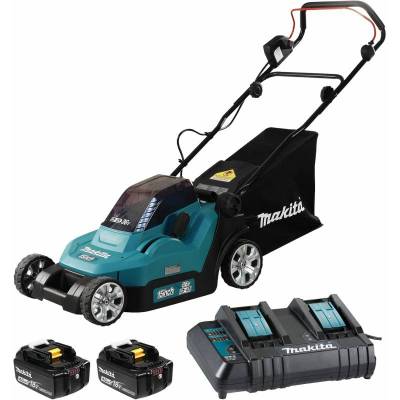 Нож, крепёж, заглушка для мульчирования, травосборник, зарядное устройство (DC18SH), аккумулятор 4 Ач (2 шт.)