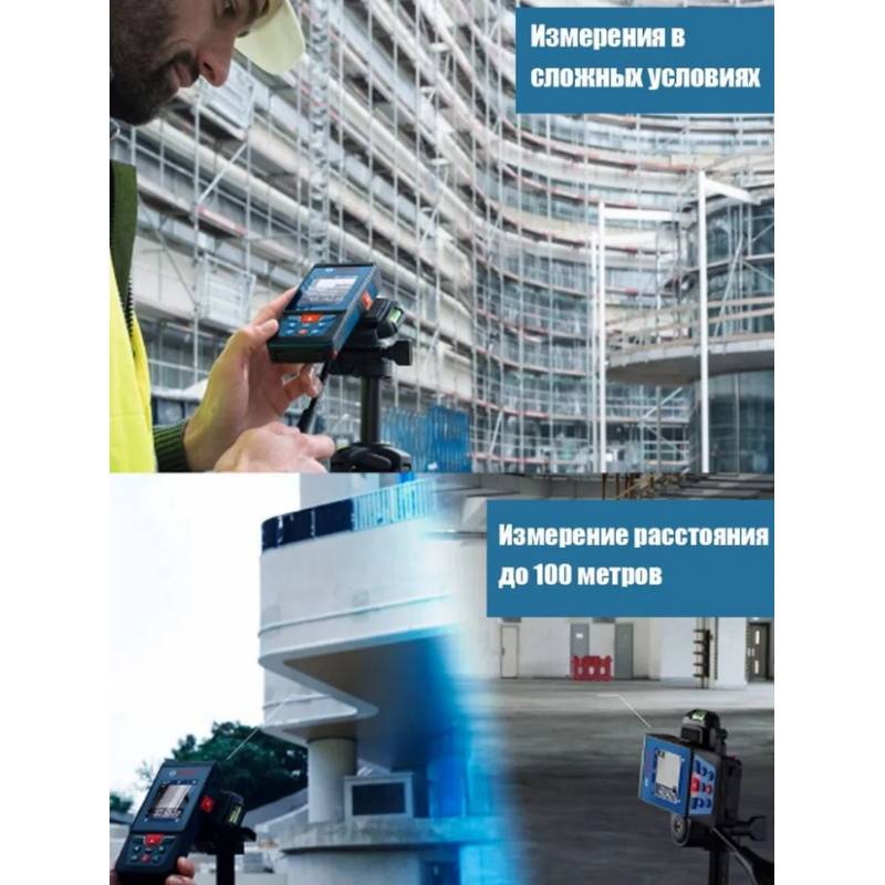 Дальномер лазерный Bosch GLM 100-25 C 0601072Y00 - профессиональный лазерный дальномер для работ вне помещения оснащён цифровой камерой и электронным дисплеем с функцией масштабирования для точного измерения расстояний до 100 м. Изображение с камеры и результаты измерений легко увидеть на большом, высококонтрастном, 2,8-дюймовом цветном IPS-дисплее, выполненным с возможностью поворота в портретную или альбомную ориентацию. Для удобства документирования результаты измерений можно передавать через Bluetooth в приложение Bosch MeasureOn App. Этот лазерный измеритель оптимален для сложных рабочих площадок благодаря уровню пыле- и влагозащиты IP54 и устойчивому к царапинам стеклу дисплея. GLM 100-25 C Professional имеет удобный интерфейс HMI с колесиком для доступа ко всем функциям. Полезная опция справки выводит подробные изображения каждой функции измерения для облегчения понимания.