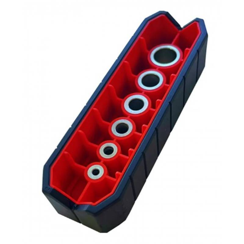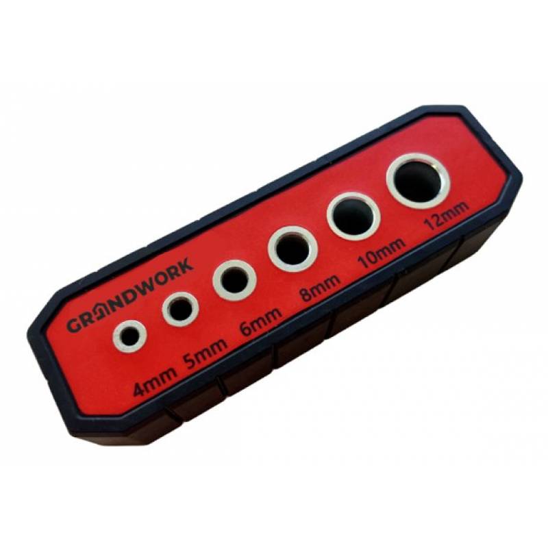 Шаблон для сверления GRANDWORK 5018 применяется для сверления отверстий. Направляющие обеспечивают плотное прилегание сверла. Отверстие получается строго под прямым углом. Шаблон имеет прорезиненное основание против проскальзывания, V-образный паз и риски для максимально точного сверления. Изготовлен из ударопрочного армированного нейлона. Диаметр втулок: 4, 5, 6, 8, 10, 12 мм.