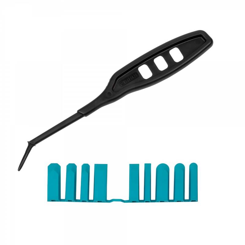 Шпатель с силиконовыми сменными насадками 9в1 BIHUI STAK10 - это универсальный инструмент, созданный для профессионального выравнивания и формирования идеальных силиконовых швов. Он оснащён сменными насадками из термопластика, которые обладают оптимальной жёсткостью и эластичностью, что позволяет достичь аккуратного и герметичного результата на любых поверхностях. Благодаря этому шпатель подходит как для бытового, так и для профессионального использования. Главной особенностью шпателя являются 9 различных насадок, которые позволяют выбрать идеальную форму шва для каждого конкретного задания. Эргономичная ручка обеспечивает удобный захват, снижая нагрузку на руки и облегчая работу даже в труднодоступных местах. Конструкция шпателя продумана таким образом, чтобы предотвратить загрязнение рук и одежды во время работы. Для удобства транспортировки и хранения все насадки поставляются в пластиковом прозрачном кейсе, что делает инструмент ещё более практичным и лёгким в использовании. Шпатель Bihui STAK10 станет незаменимым помощником для создания качественных и долговечных силиконовых швов, обеспечивая комфорт и точность на каждом этапе работы.
