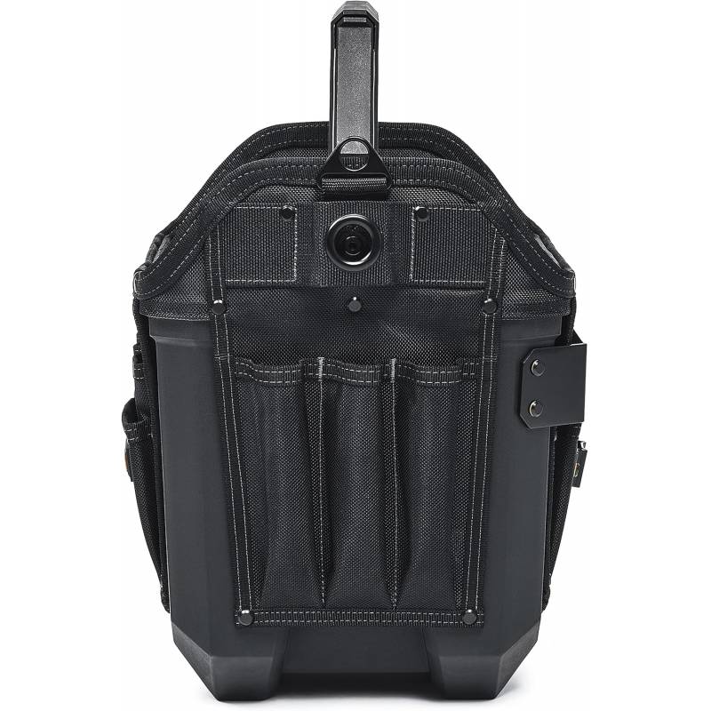 Уникальная жесткая конструкция корпуса защищает все содержимое и сохраняет форму. Ее универсальные карманы включают структурированные внешние карманы, которые сгибаются, чтобы надежно удерживать инструменты на месте. Изготовленная из высококачественных, прочных материалов и усиленная прочными заклепками, эта прочная сумка соответствует строгим требованиям профессионалов.