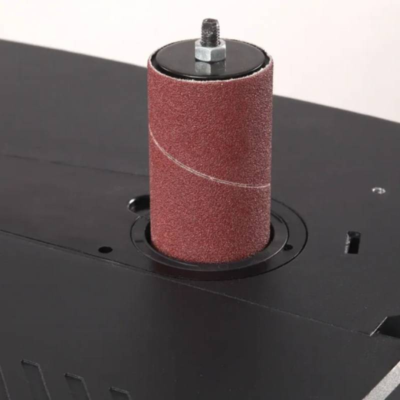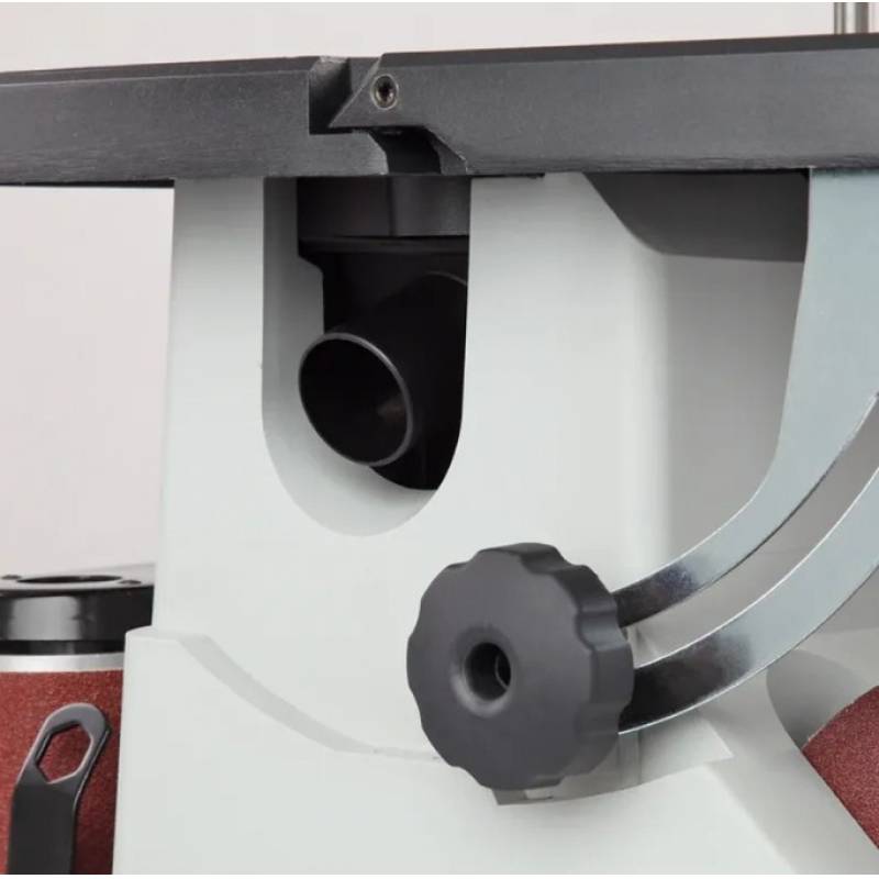 Ленточный узел имеет два обводных ролика разного диаметра, вокруг которых можно работать с вогнутыми поверхностями и прямой участок с металлической подложкой для плоских деталей из дерева. Движение ленты также происходит с осцилляцией, что повышает производительность и качество шлифования. Небольшие габариты и вес обеспечивают легкость размещения станка, а также рациональное хранение и транспортировку. В основании станка расположены ложементы для хранения всей оснастки