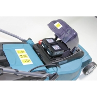 Газонокосилка Makita DLM380Z - агрегат для борьбы с высокой травой на участке площадью 300-600 кв.м. Для её работы требуются два аккумулятора 18В емкостью 3 А*ч .