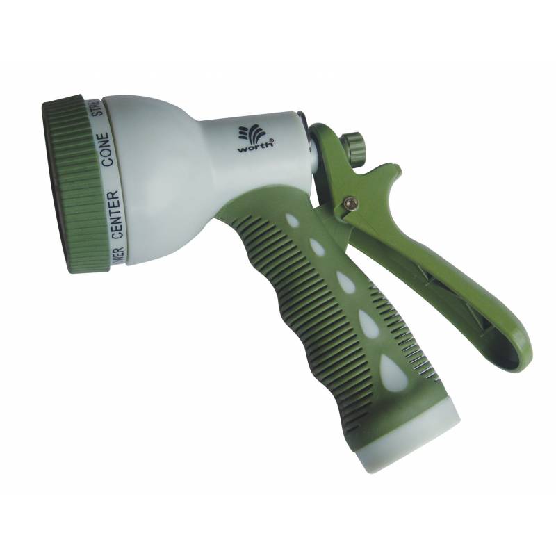 Эргономичный пистолет-разбрызгиватель с курком в современном исполнении из надежных пластиковых элементов. Конструкция обеспечивает прочность и простоту в эксплуатации. Удобно держать в руке. Предусмотрено 8 режимов подачи воды с плавной регулировкой напора: от сильной струи до мелкодисперсного распыления, в зависимости от поставленной задачи, также предусмотрена полная остановка подачи воды. Управление легко осуществляется с помощью одной руки. Совместим со всеми элементами системы полива WORTH