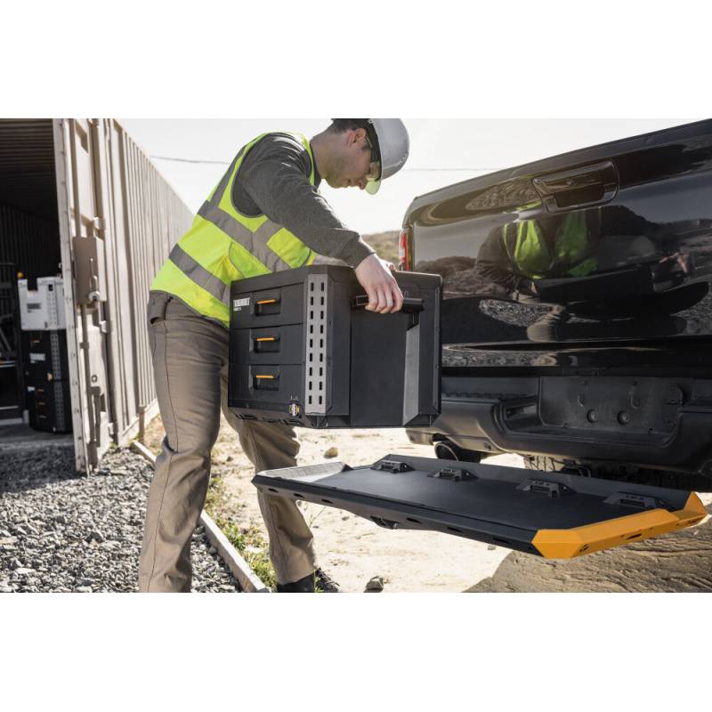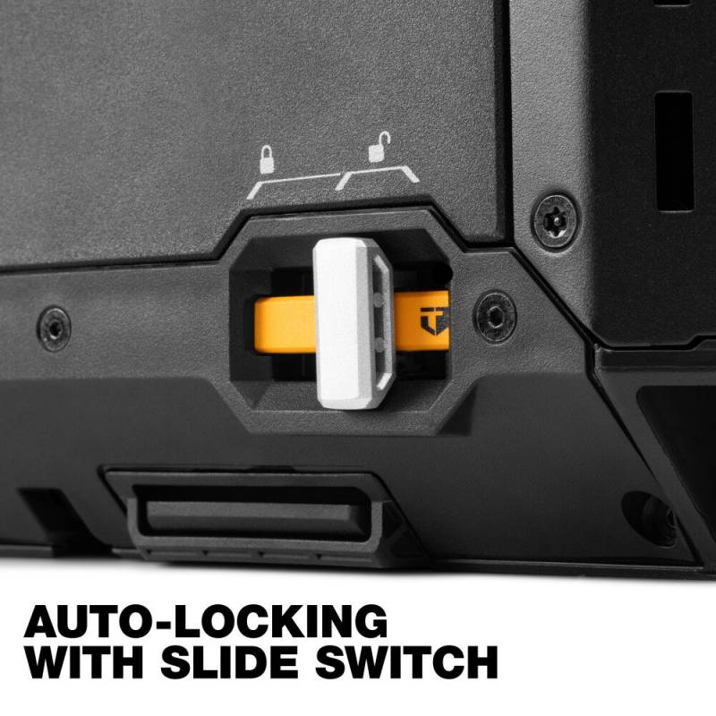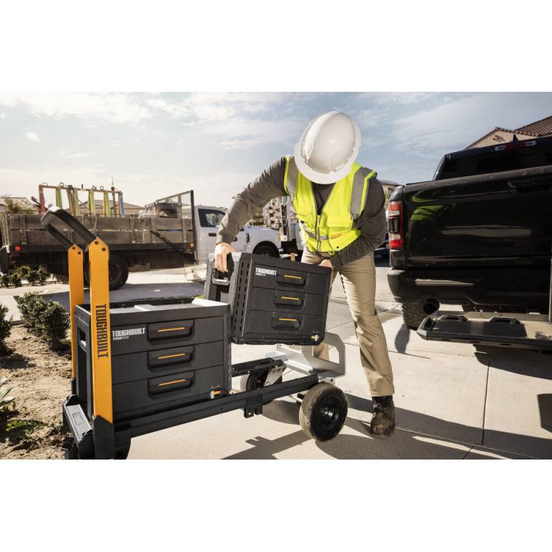 Ящик для инструментов ToughBuilt TB-B1-D-70-3 StackTech с 3 выдвижными ящиками. Автоматическая блокировка надежно фиксирует ящики при транспортировке и легко разблокируется нажатием переключателя. Индикатор блокировки показывает, что система готова к перемещению.