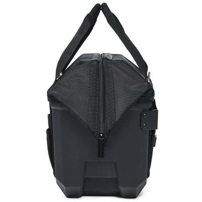 Уникальная жесткая конструкция корпуса защищает все содержимое и сохраняет форму. Ее универсальные карманы включают структурированные внешние карманы, которые сгибаются, чтобы надежно удерживать инструменты на месте. Изготовленная из высококачественных, прочных материалов и усиленная прочными заклепками, эта прочная сумка соответствует строгим требованиям профессионалов.