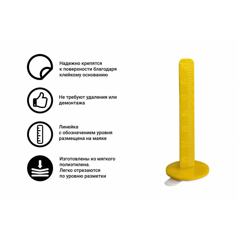 - Простота использования - линейка с обозначением уровня размещена на маяке.