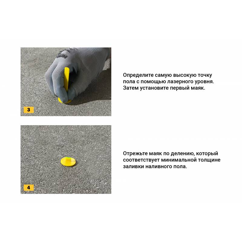 3. Отрежьте маяк по делению, который соответствует минимальной толщине заливки наливного пола.